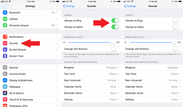 Để tắt tính năng này, hãy đi tới Cài đặt => Âm thanh & Cảm ứng => tắt Rung khi đổ chuông và Rung khi im lặng