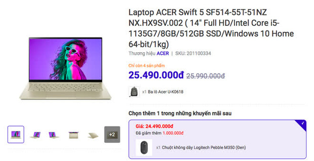Acer Swift 5 (giá 24.490.000 đồng)