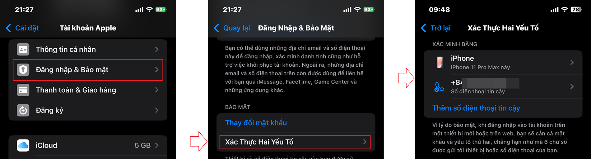 Sử dụng một số điện thoại được tin cậy (số mà bạn sẽ sử dụng để nhận mã xác minh), sau đó chạm vào Tiếp. Một mã xác minh được gửi đến số điện thoại tin cậy của bạn. Nhập mã xác minh trên iPhone của bạn. Như vậy, xác thực hai yếu tố được bật cho tài khoản Apple của bạn. Giờ đây iPhone của bạn là một thiết bị được tin cậy.