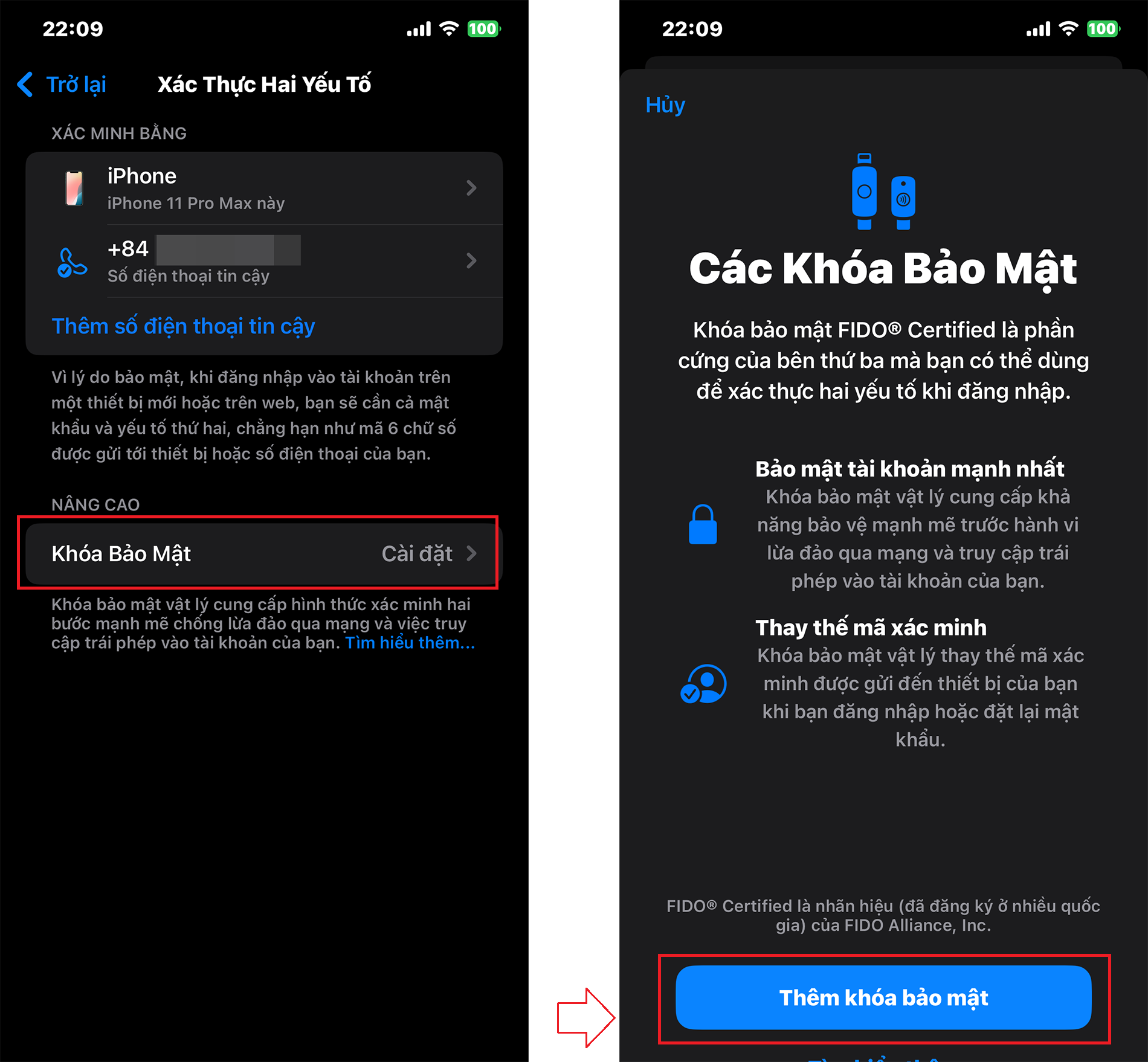 Ngoài ra, trong mục Xác thực 2 yếu tố, có thêm mục Khóa bảo mật vật lý (Security Keys).