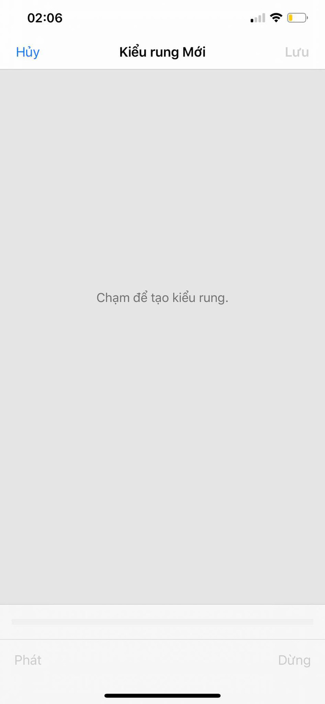 Đầu tiên, mở Cài đặt => Âm thanh & Cảm ứng => Nhạc chuông => Rung. Kế tiếp, kéo xuống phía dưới cùng chọn Tạo kiểu rung mới và Chạm để tạo kiểu rung. Lúc này bạn chỉ cần giữ tay trên màn hình tùy thích để tạo kiểu rung riêng biệt cho điện thoại của mình.