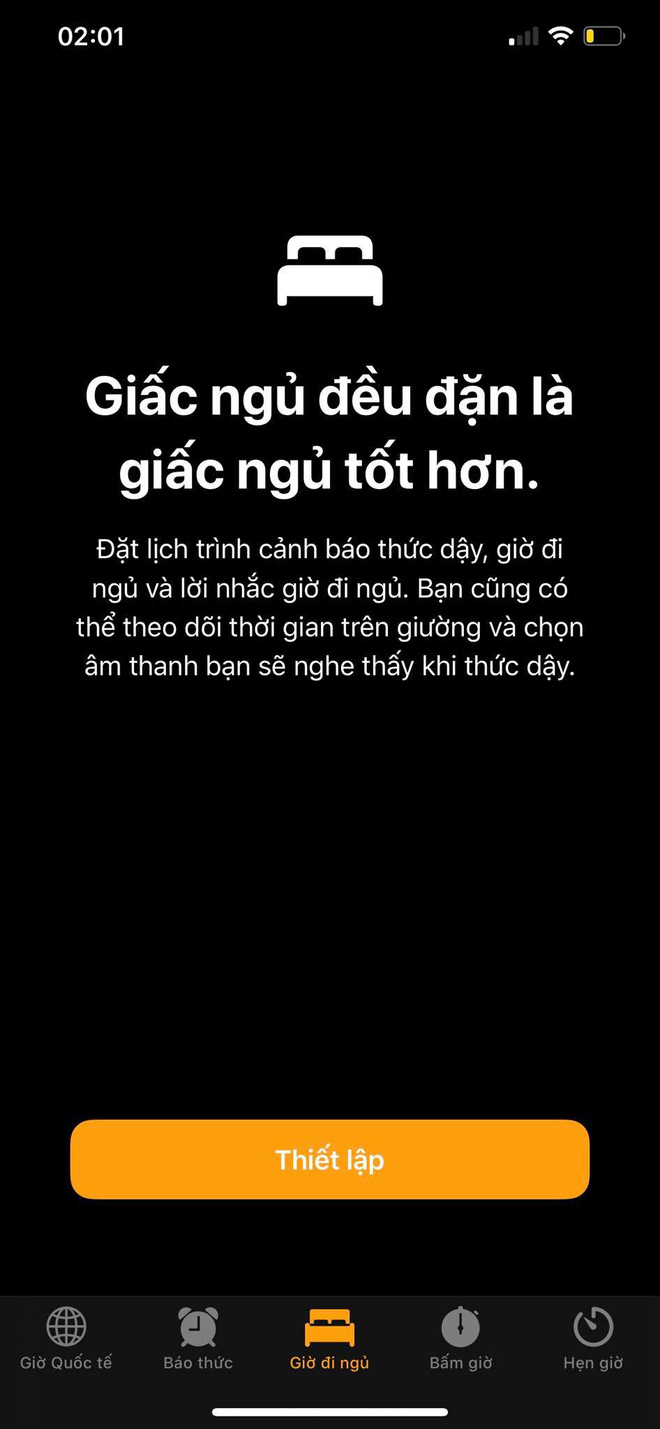 Mặc dù iPhone không có chức năng chuyên nghiệp, nhưng với chế độ Giờ đi ngủ của đồng hồ bạn sẽ được nhắc nhở đi ngủ và thức dậy đúng giờ. Ngoài ra, tính năng này sẽ theo dõi và tổng hợp lại quá trình giấc ngủ của bạn.