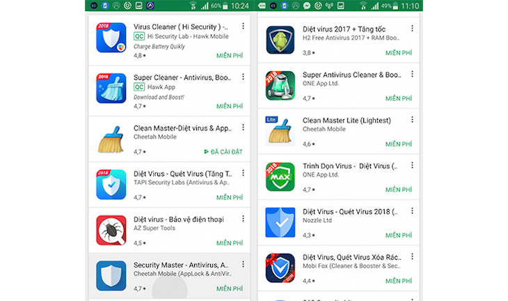 Phần mềm diệt virus không những gây hao pin mà còn làm chậm máy của bạn, hiện nay khả năng bảo mật của hệ điều hành cũng đã được nâng cao nên các ứng dụng diệt viruss cũng không còn có nhiều tác dụng.
