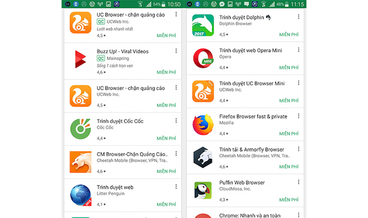 Hiện trên các máy Android trình duyệt mặc định theo máy là Chorme và nó được khuyến khích sử dụng vì đơn giản, bảo mật cao và tương thích tốt với điện thoại Android, cài các trình duyệt web bên thứ 3 sẽ tăng nguy cơ mất dữ liệu và khả năng bảo mật của thiết bị.
