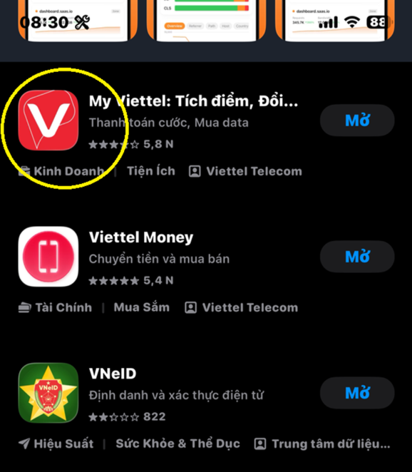Tải và cài đặt ứng dụng My Viettel trên điện thoại.