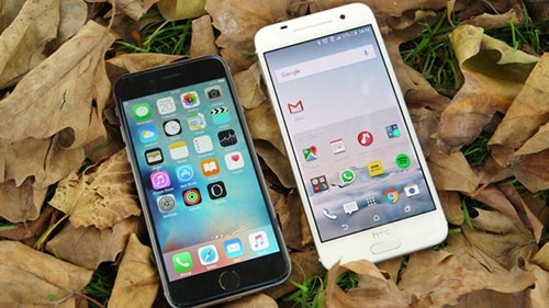 HTC One A9 (phải) ra mắt tối 20/10 gây nhiều sự chú ý khi có mức giá tốt, cấu hình ổn và đặc biệt là kiểu dáng mang nhiều nét tương đồng với iPhone 6s ở mặt sau. |