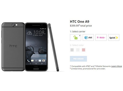 Với One A9, HTC đã đi một chiến lượng hoàn toàn khác biệt về giá. Model này chỉ có giá khởi điểm 399 USD tại thị trường Mỹ cho phiên bản dung lượng 32 GB (các thị trường khác có bản 16 GB). Trong khi đó, cũng tại đây iPhone 6s có giá khởi điểm là 649 USD cho bản 16 GB. |