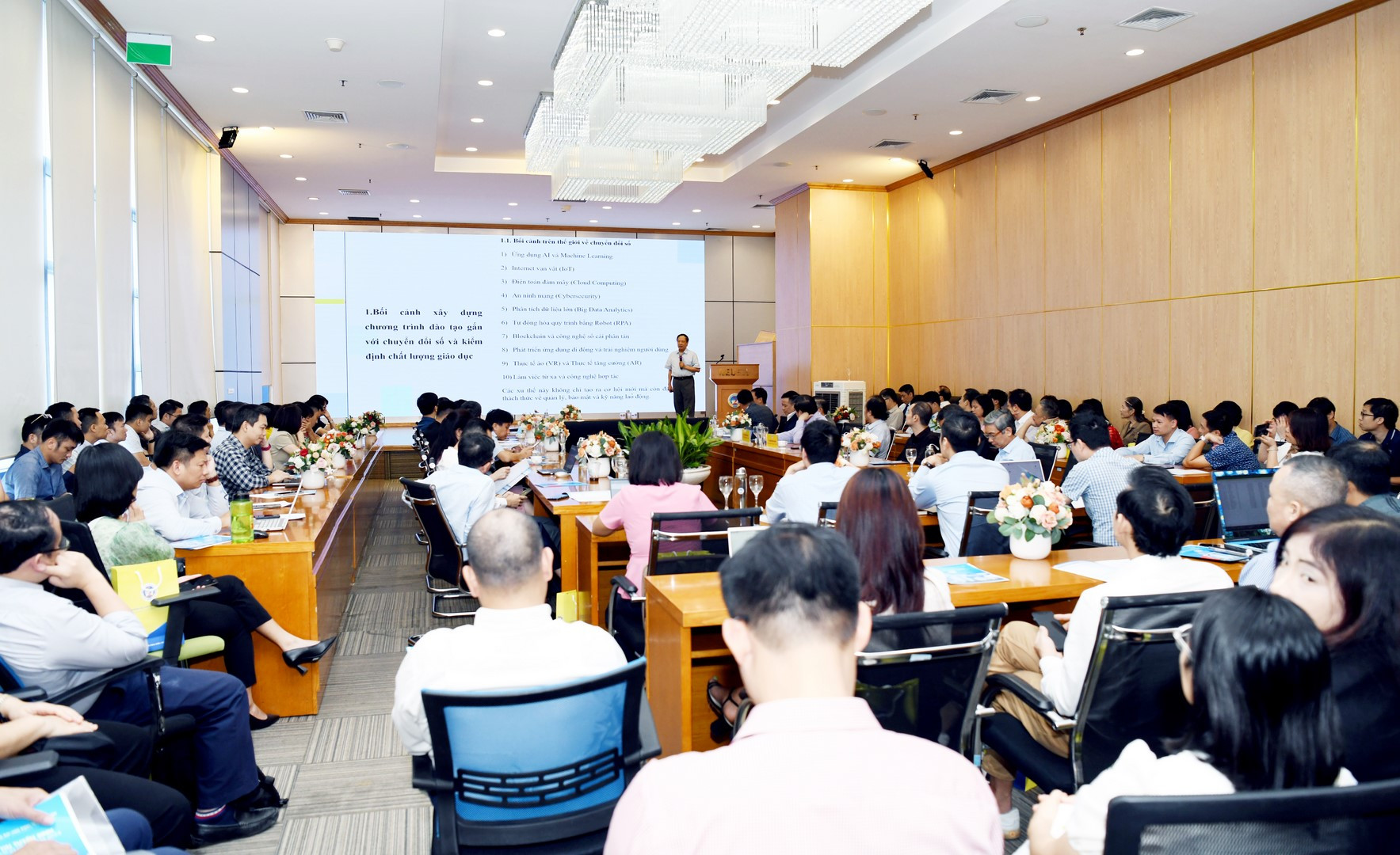 Tại hội thảo khoa học quốc gia với chủ đề “Chuyển đổi số - Nâng cao chất lượng đào tạo” do Trường ĐH Kinh tế Quốc dân tổ chức mới đây, các chuyên gia, nhà khoa học, nhà quản lý giáo dục và giảng viên tới từ hơn 40 cơ sở giáo dục đại học đã cùng bàn thảo về việc nâng cao chất lượng đào tạo của giáo dục đại học trong kỷ nguyên công nghệ và chuyển đổi số.