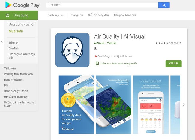 Vào ngày 7/10 vừa qua, Airvisual - một ứng dụng thống kê chất lượng không khí phổ biến trên thế giới đã bị gỡ bỏ khỏi các chợ ứng dụng trên điện thoại thông minh như Apple Store và CH Play. Qua tìm hiểu thì Louise Watt, phát ngôn viên của IQAir AirVisual cho biết đã tạm thời gỡ ứng dụng do lượng đánh giá 1 sao dành cho ứng dụng này ở thị trường Việt Nam đã tăng đột biến.