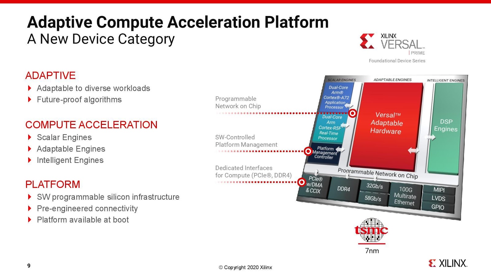 Nó có một số lợi thế nhất định so với những thứ khác như CPU và GPU trong nhiều tác vụ. Trong tay Xilinx là vô số công nghệ xịn sò. Chẳng hạn, nền tảng ACAP (Adaptive compute acceleration platform) Versal Premium 7nm hỗ trợ giao tiếp PCIe 5.0 và kết nối CXL, bộ thu phát 112G, Ethernet 600G, băng thông của network-on-chip (NOC) đạt 123 TBps.