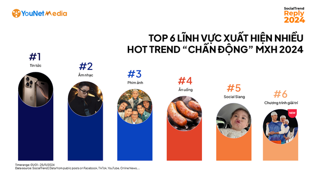 YouNet Media, Công ty chuyên về Nền tảng và Dịch vụ phân tích dữ liệu lắng nghe mạng xã hội (Social Listening) vừa công bố báo cáo SocialTrend Reply 2024 - nhìn lại các hot trend trên mạng xã hội năm 2024.