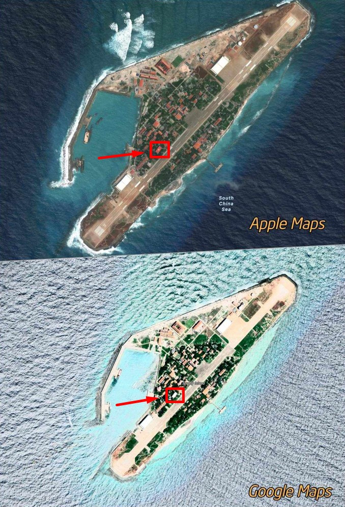 Dư luận trong nước đang bức xúc khi bản đồ vệ tinh của Google không hiển thị hình ảnh lá quốc kỳ khổng lồ bằng gốm của Việt Nam trên đảo Trường Sa Lớn (Quần đảo Trường Sa). Tuy vậy, điều mà nhiều người thấy khó hiểu là ở cùng một vị trí chụp, ảnh vệ tinh của Apple Maps cho ra hình ảnh lá quốc kỳ rõ nét, trong khi ở ảnh vệ tinh của Google, vị trí lá cờ chỉ có một màu trắng lóa.