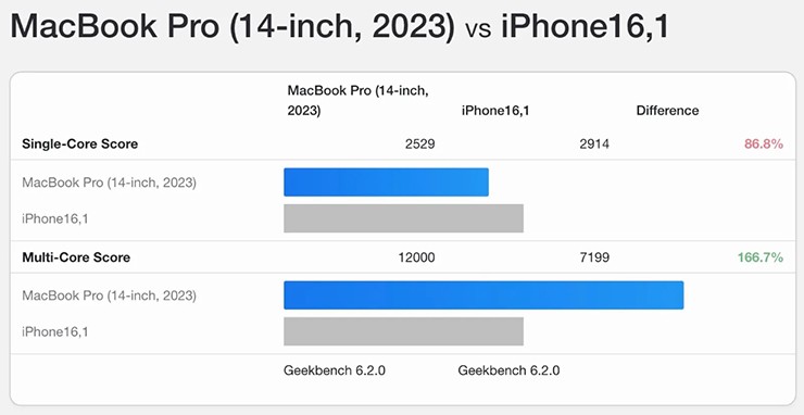 Như điểm chuẩn đã cho thấy, A17 Pro cực kỳ mạnh mẽ. Nó không chỉ thổi bay các đối thủ cạnh tranh mà điểm Geekbench lõi đơn cho thấy iPhone 15 Pro nhanh hơn MacBook M2, thậm chí còn cả M2 Max. Apple đã cố gắng đưa những gì trông như chip cho PC vào smartphone của mình. Không có công ty nào khác trong ngành có thể làm được điều đó, nó khiến nhiều người đặt kỳ vọng MacBook Air M3 cũng có thể mang đến sức mạnh ấn tượng không kém, bởi M3 được cho là mạnh hơn A17 Pro và thậm chí còn phù hợp hơn để chơi game.