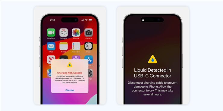 Trên các mẫu máy Mac mới nhất, công ty hiện đã bổ sung cách để nhận biết chất lỏng có từng lọt vào trong cổng USB-C của máy hay không. Phương thức này có thể xem là một daemon mới có tên “liquiddetectiond” và nhiệm vụ là xác định chất lỏng rơi vào cổng USB Type-C của máy (trong trường hợp này là Mac). Sau đó, như mọi khi, sẽ có một cảnh báo để người dùng ngưng sạc, tránh hư hỏng thiết bị.