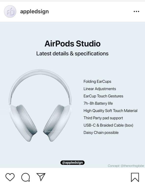 Ngoài ra, chiếc tai nghe này sẽ được kế thừa công nghệ âm thanh đỉnh cao tới từ Beats. Đây sẽ là mẫu tai nghe Bluetooth cao cấp mới của Apple, theo chân thành công của AirPods Pro được ra mắt năm ngoái. AirPods Studio được dự đoán sẽ có giá khoảng 349 USD (tương đương 8,3 triệu đồng).