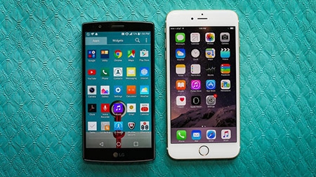 | LG G4 màn hình 5.5 inch có kích cỡ nhỏ hơn iPhone 6 Plus màn hình kích thước tương tự |