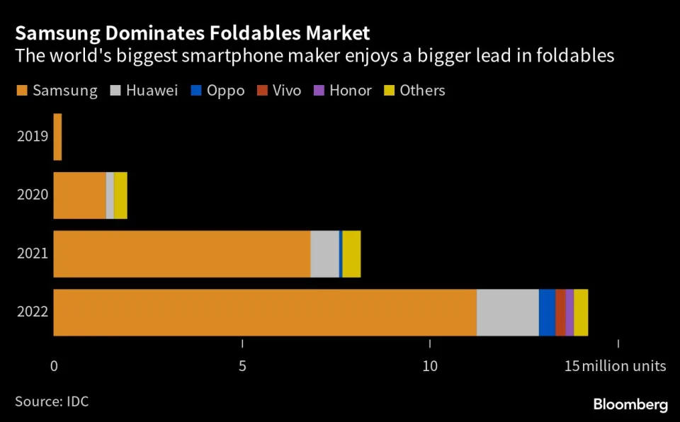 Hiện tại, smartphone gập là đấu trường riêng của Android, do Samsung chi phối trên sân chơi toàn cầu. Dù vậy, cuộc cạnh tranh còn căng thẳng hơn tại Trung Quốc, nơi các thương hiệu trong nước đang dựa vào smartphone gập để thăng hạng. Xiaomi, Huawei, Vivo và Oppo đều đã bán vài mẫu trên thị trường. Honor, thương hiệu tách ra từ Huawei năm 2020, cũng giúp phân khúc trở nên phải chăng hơn với Honor Magic V.