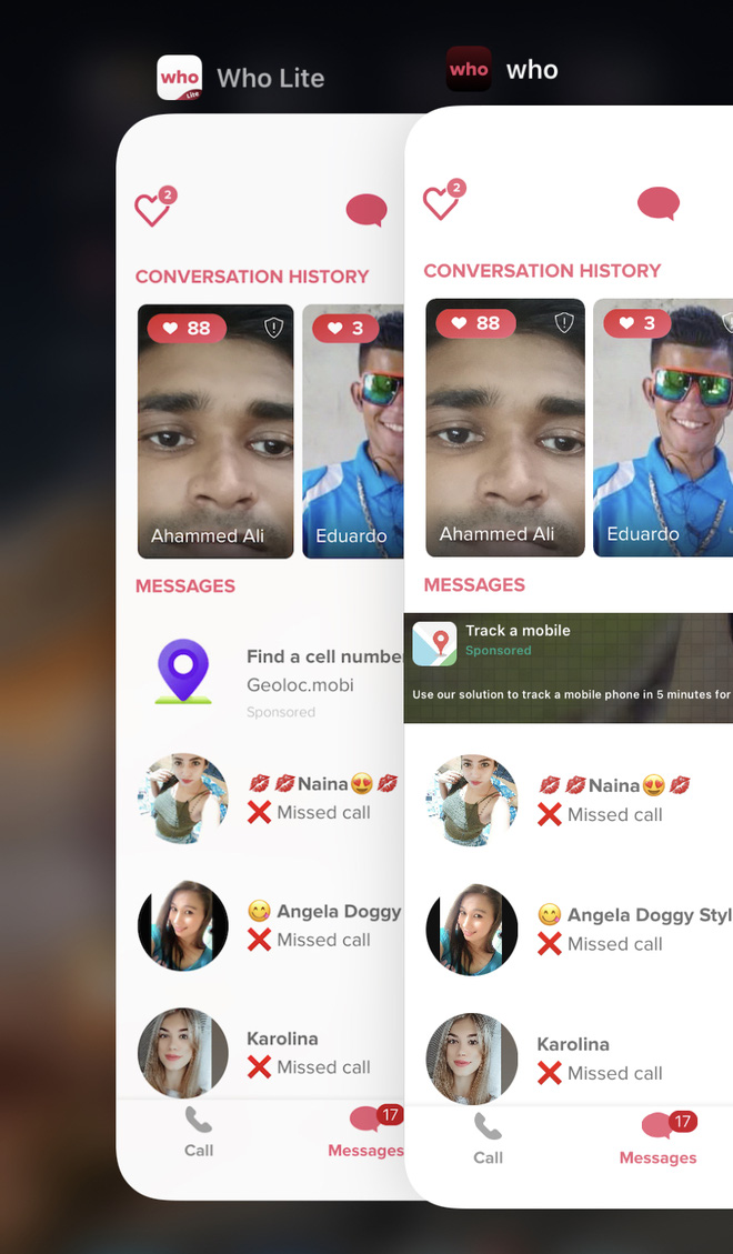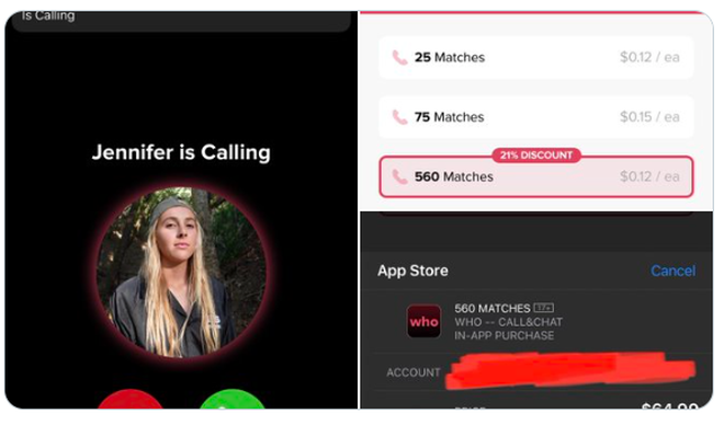 Apps Exposed cho biết: "Họ cũng thực sự rất giỏi trong việc tạo các thông báo đẩy giả để thu hút người dùng mua thêm đăng ký hoặc tiền xu 'ảo'. Bất ngờ đáng kinh ngạc hơn, khi 2 trong số những ứng dụng hẹn hò lừa đảo kiểu này lại leo được lên Bảng xếp hạng hàng đầu của Mỹ mà Bộ phận hỗ trợ của Apple không hề hay biết gì... Mỗi khi bạn mở một trong các ứng dụng của chúng, ai đó sẽ gọi ngay cho bạn. Tuy nhiên, đó không phải là người thật mà là một con bot và nếu bạn cố gắng chấp nhận cuộc gọi, điều đó cho thấy bạn sẽ có nhiều match hơn".