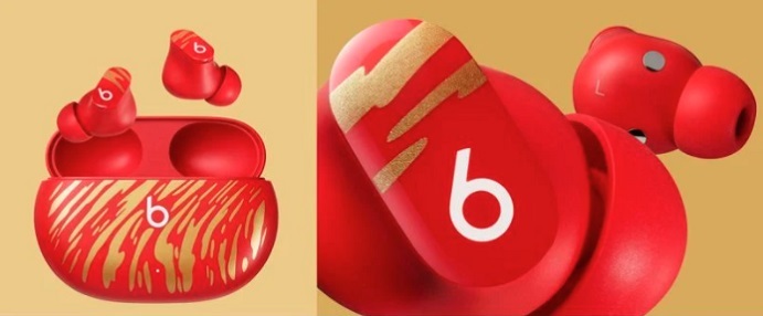 Apple vừa giới thiệu một phiên bản giới hạn của tai nghe không dây Beats Studio Buds để chào đón Tết Âm lịch 2022, Tết Nhâm Dần. Phiên bản này của tai nghe Beats mang màu đỏ vằn vàng, tạo sự liên tưởng đến con giáp năm tới.