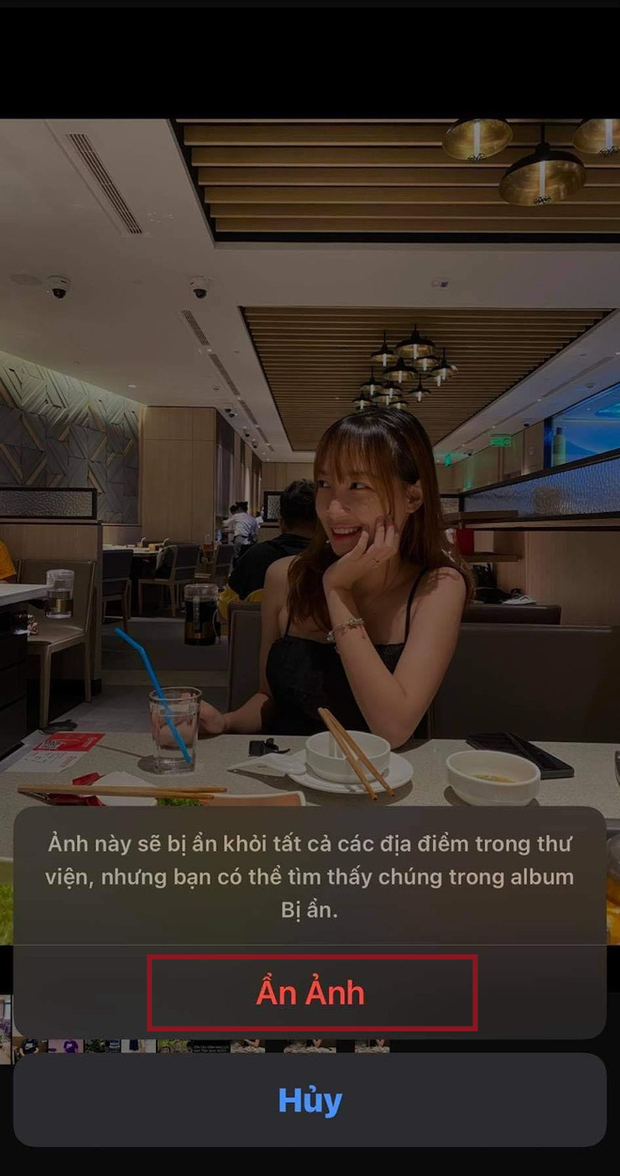 "Ảnh này sẽ bị ẩn khỏi tất cả các địa điểm trong thư viện, nhưng bạn có thể tìm thấy chúng trong Album Bị ẩn".
