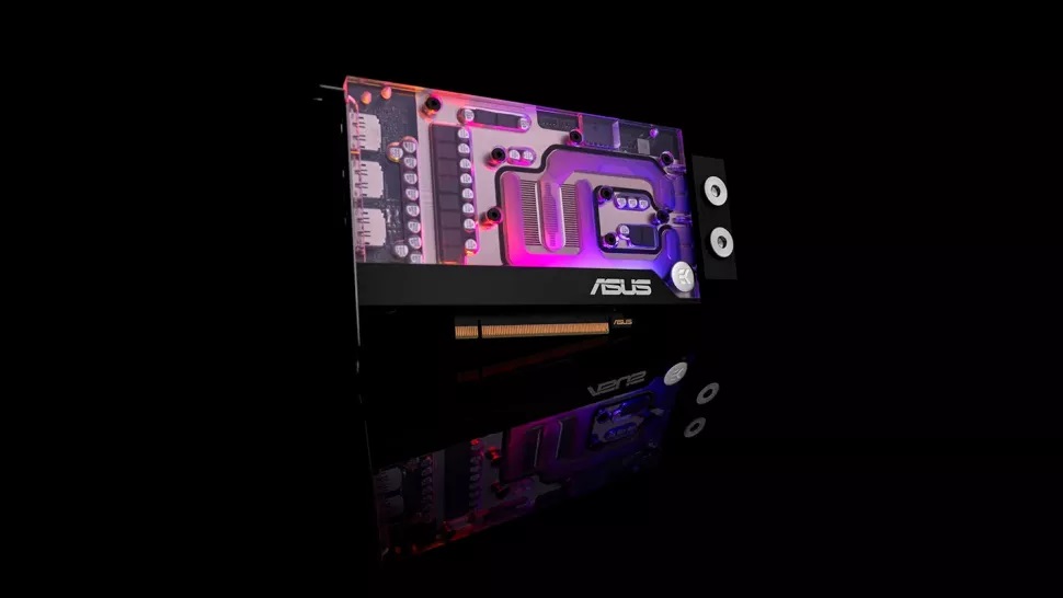 ASUS EKWB GeForce RTX 3090, RTX 3080, và RTX 3070 sẽ đi kèm với block nước full-cover giúp làm mát GPU, VRAM, và VRM. Block nước được thiết kế theo kiểu Classic của EKWB và có gắn thương hiệu ASUS lên trên đó.
