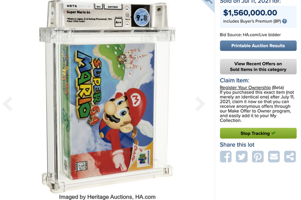 Ngày 11 tháng 7 năm 2021: bản sao của Super Mario 64 được bán với giá 1,56 triệu USD.