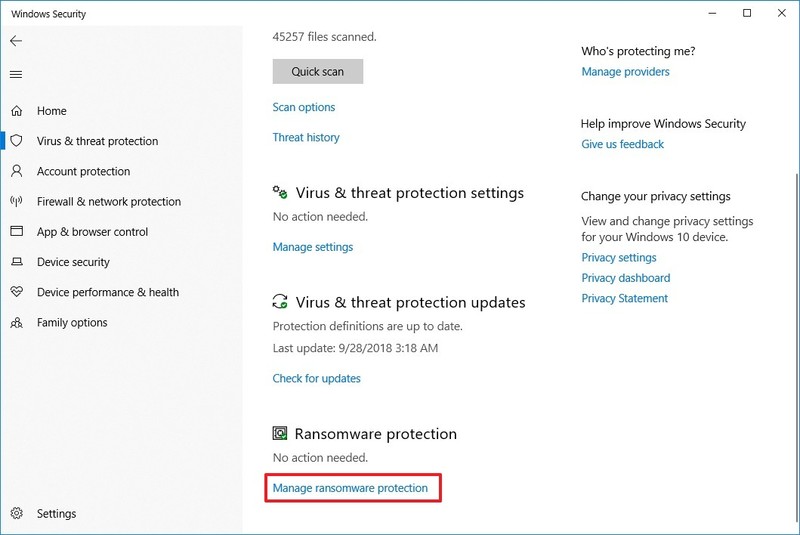 Microsoft đã tích hợp tính năng bảo vệ máy tính khỏi các phần mềm ransomware vào Window 10 trong chương trình Virus and Threat Protection.