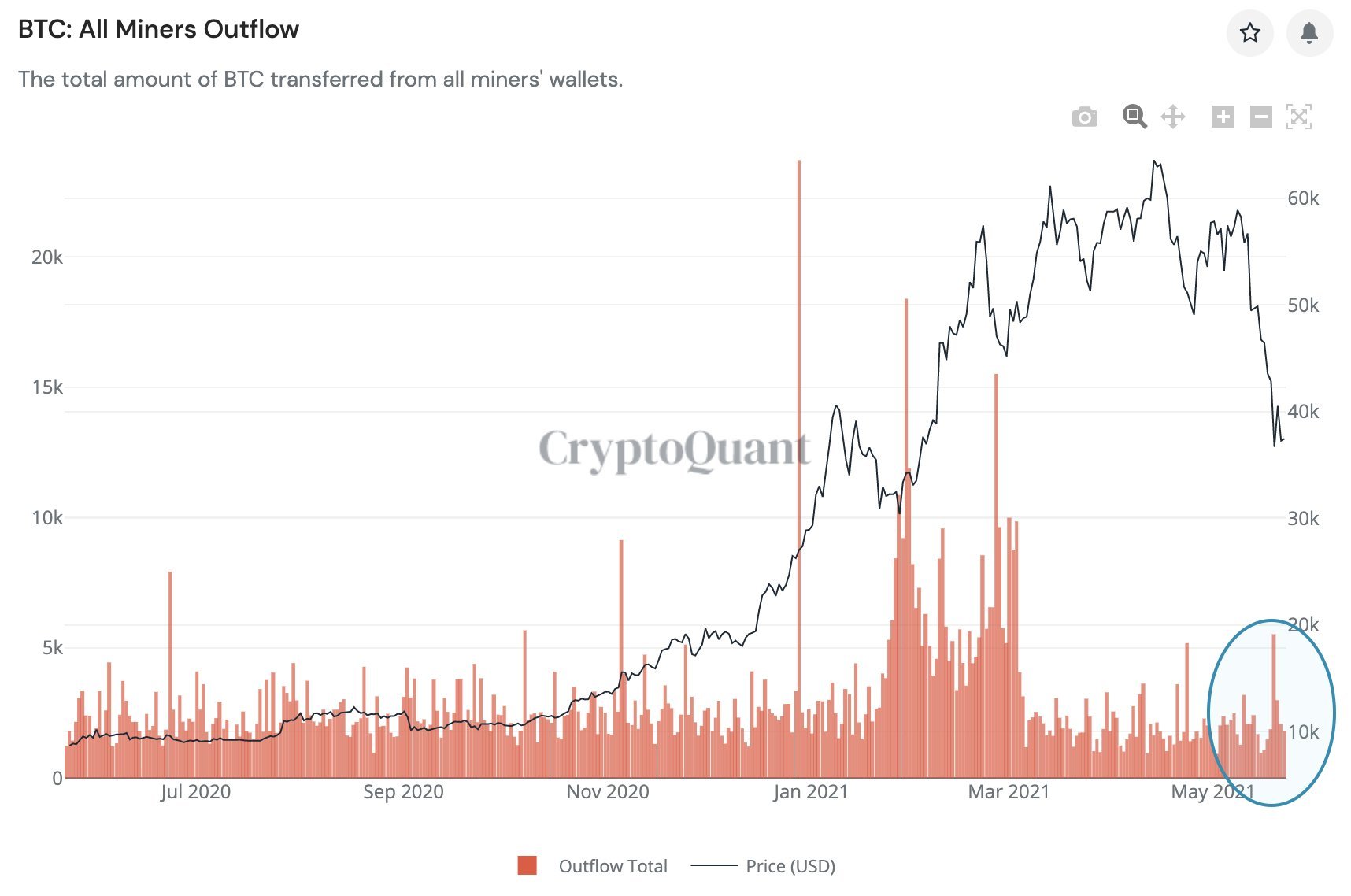 Không chỉ Việt Nam, xu hướng giữ coin cũng được phản ánh rõ với thợ đào thế giới. Biểu đồ của CryptoQuant cho thấy các thợ đào Bitcoin chỉ xả ra một lượng lớn đồng này vào tháng 1 và tháng 3, sau đó giảm dần và bán ra ổn định trong suốt hai tháng tiếp theo.