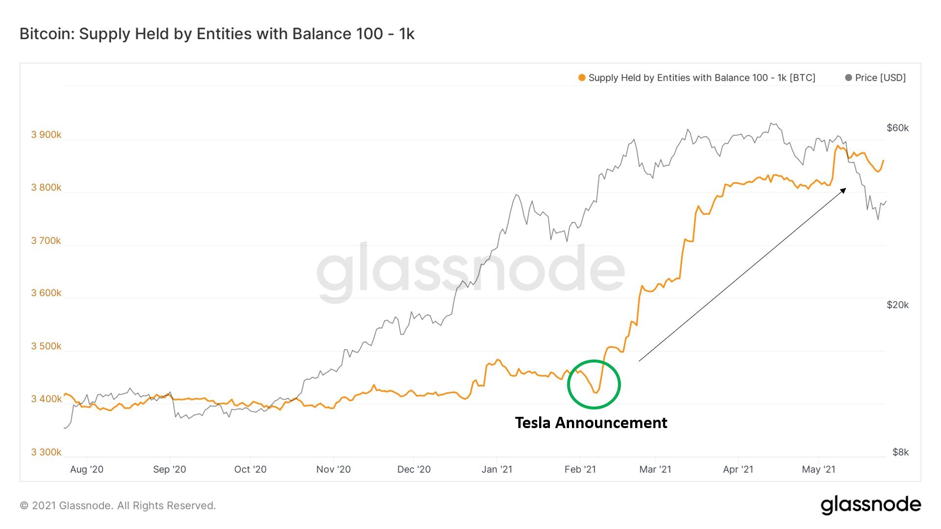 Nhưng giá Bitcoin sau khi hồi phục lại tiếp tục giảm trong các ngày 21/5 và 23/5. Chủ yếu là vì những tin tức tốt xấu đan xen như Trung Quốc trấn áp hoạt động đào và giao dịch tiền ảo, Iran tạm cấm đào tiền ảo đến tháng 9/2021 hay Hội đồng khai thác Bitcoin được thành lập hướng tới mục tiêu trung hòa carbon, giảm khí thải nhà kính phát ra từ hoạt động đào tiền ảo.