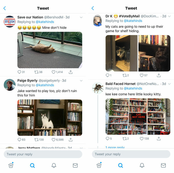 Ngày 7/6, Kate Hinds, biên tập viên phòng tin tức tại đài phát thanh công cộng WNYC của New York đăng bức hình chụp kệ để TV, sách với dòng mô tả ngắn "Hôm nay là ngày tìm mèo".