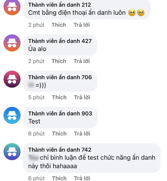 Người dùng có thể bình luận với biệt danh "Anonymous member - Thành viên ẩn danh", kèm dãy số được đặt ngẫu nhiên theo thuật toán của Facebook.