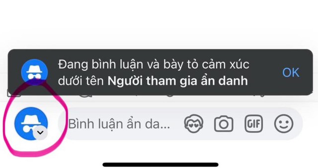 Tại đây, bạn sẽ thấy ở bên trái thanh bình luận có một biểu tượng ảnh đại diện. Nhấn vào ảnh đại diện, bạn có thể tùy chọn chuyển sang chế độ ẩn danh (anonymous). Sau đó có thể thả tương tác hoặc ghi bình luận mà không hiển tên thật.