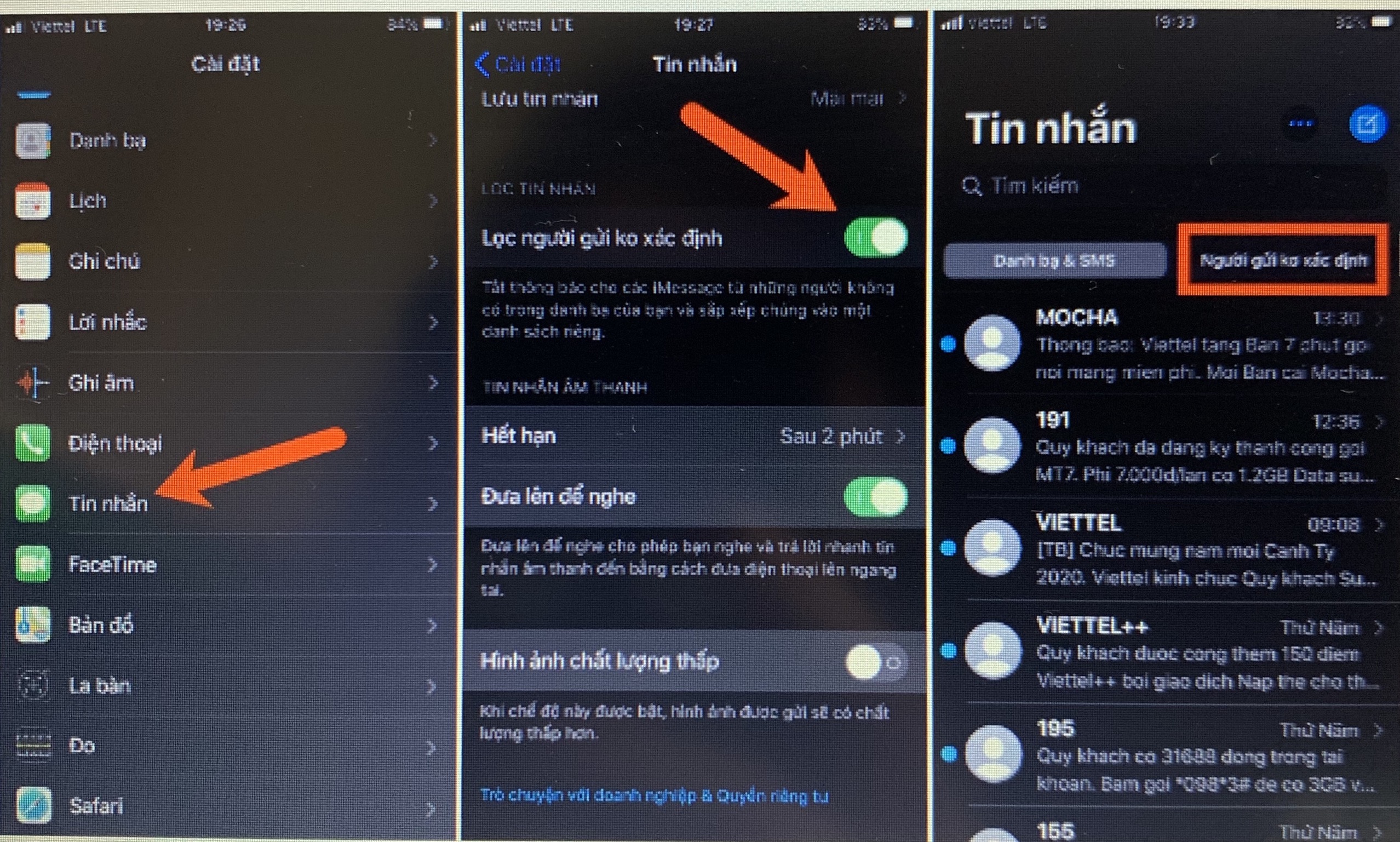 Trên iPhone, truy cập phần Cài đặt, kéo xuống rồi chọn Tin nhắn. Tiếp theo, bật tính năng Lọc người gửi không xác định, nằm ở gần đáy trang cài đặt.
