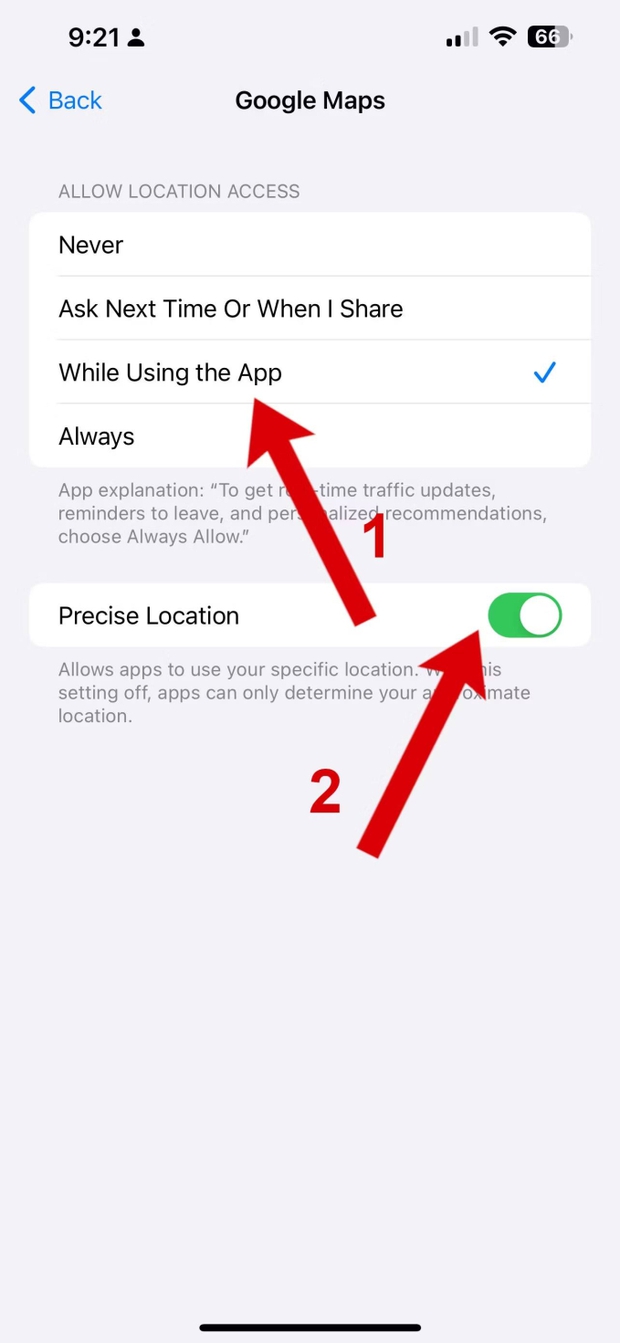 Nếu bạn sử dụng iPhone, hãy kiểm tra xem Google Maps có quyền truy cập vị trí của bạn hay không.