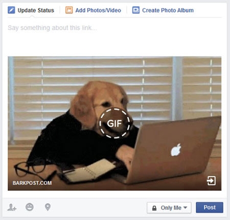 Xong, bạn chỉ việc nhấn nút Post. Tuy nhiên, bạn nên xóa đường dẫn đã dán vào ô status để thông tin đăng tải chỉ còn là một bức ảnh. Khi xem, bạn hoặc các Facebooker chỉ việc nhấn vào bức ảnh để xem ảnh động ngay trên giao diện Facebook thay vì mở sang trang mới.