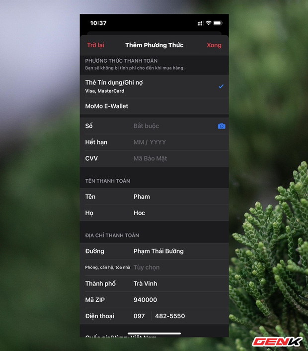 Bạn hãy tiến hành nhập thông tin thanh toán của mình theo yêu cầu của Apple