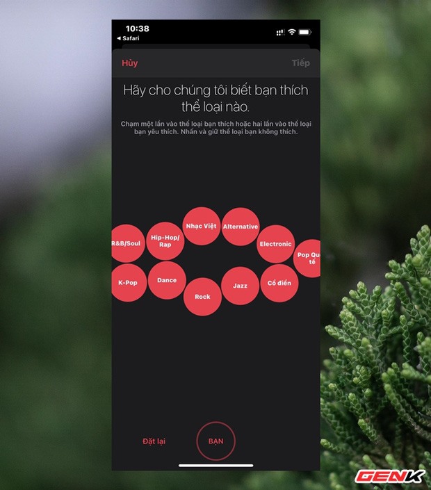 Khi đã xong, giao diện thiết lập cấu hình Apple Music sẽ hiện ra, đầu tiên sẽ là lựa chọn thể loại nhạc bạn thích nghe
