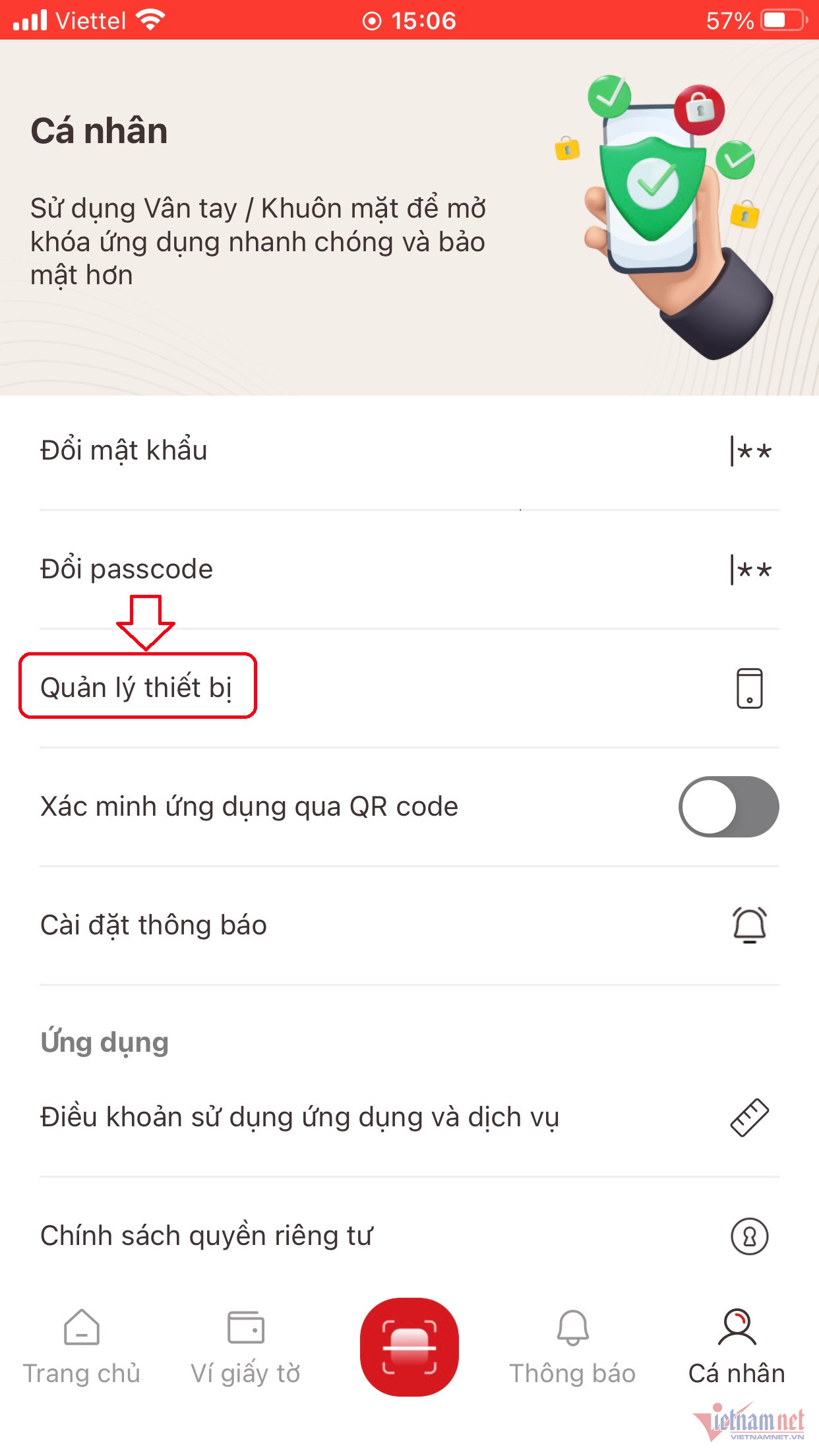Bước 2: Chọn “Cá nhân”, sau đó chọn “Quản lý thiết bị”.