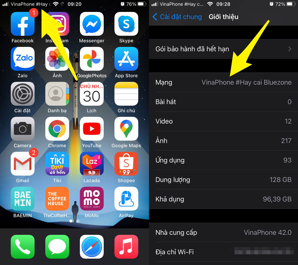 Trường hợp chiếc iPhone/iPad đã qua sử dụng bạn sắp mua chạy iOS 13 hoặc thấp hơn, cách tốt nhất để kiểm tra xem nó có tương thích với nhà mạng bạn muốn sử dụng hay không là gắn thẻ SIM của nhà mạng đó vào máy, sau đó kiểm tra cột sóng và tên nhà mạng ở phía trên góc trái hoặc trong Settings (Cài đặt) > About (Giới thiệu) > Network (Mạng).