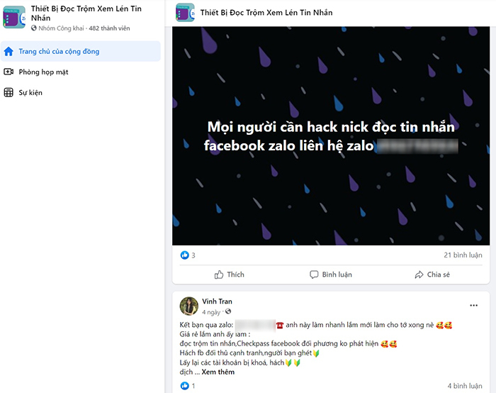 Chỉ cần tìm kiếm từ khóa "đọc trộm tin nhắn Zalo" trên Google hoặc Facebook, bạn sẽ thấy hàng loạt dịch vụ và hội nhóm nhận theo dõi, định vị, đọc trộm tin nhắn với nhiều mức giá khác nhau.