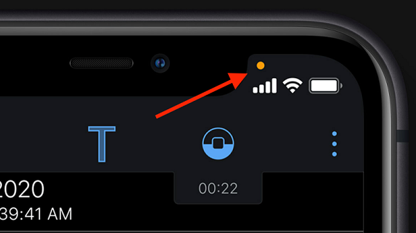 - Còn trong trường hợp xuất hiện dấu chấm màu da cam thì có nghĩa có ứng dụng đang sử dụng tính năng micro.