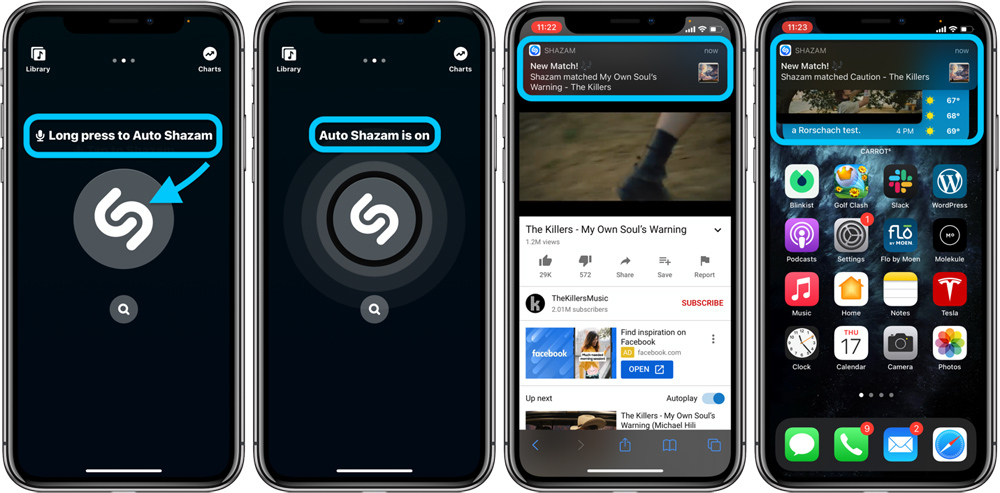 Bước 4: Tính năng Auto Shazam cũng hoạt động khi bạn xem video bên trong các ứng dụng như Safari, YouTube, v.v.