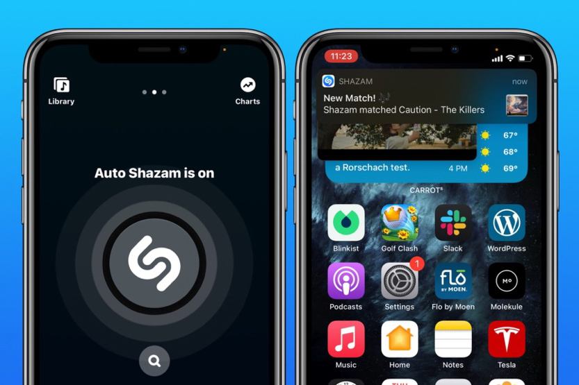 Bước 6: Khi cần xác định tên bài hát, bạn chạm tay hai lần hoặc ba lần liên tiếp vào mặt lưng iPhone. Ngay lập tức, iPhone sẽ kích hoạt phím tắt Shazam và bắt đầu nhận diện bài hát. Nếu nhận diện thành công, Shazam sẽ hiển thị biểu ngữ thông báo ở cạnh trên cùng của màn hình, đồng thời thêm bài hát vào thư viện của ứng dụng.