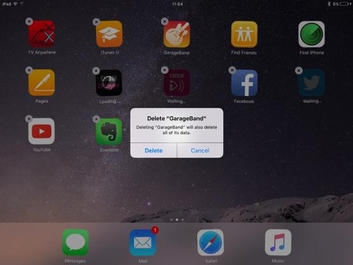 Để xóa các ứng dụng không còn sử dụng nữa, bấm và giữ trên biểu tượng của ứng dụng đó cho đến khi biểu tượng đó bắt đầu rung rung, sau đó chạm vào x ở góc trên cùng bên phải biểu tượng để xóa nó khỏi hệ thống.