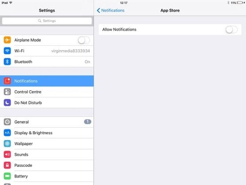 Nhấn Settings > Notifications, sau đó kích chọn mỗi ứng dụng và chuyển thiết lập Notifications sang trạng thái Off.