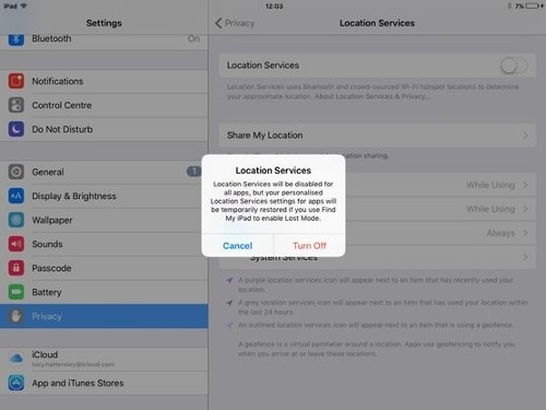 Nhấn Settings > Privacy > Location Services và chuyển thiết lập Location Services sang trạng thái Off.