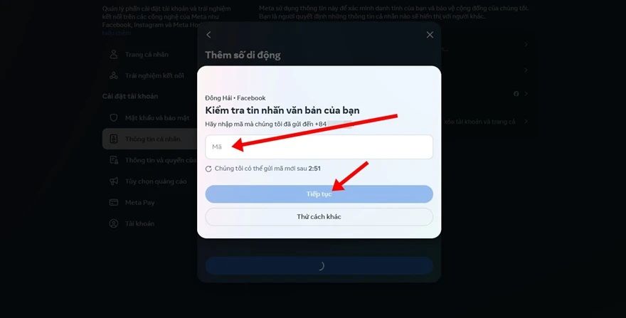 Cách xác thực số điện thoại cho tài khoản Facebook trên máy tính
