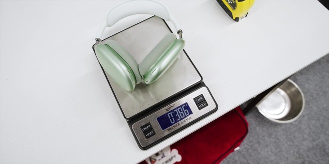 Tai nghe có trọng lượng 386 gam, nặng hơn một chút so với thông số được Apple công bố là 384.8 gam.