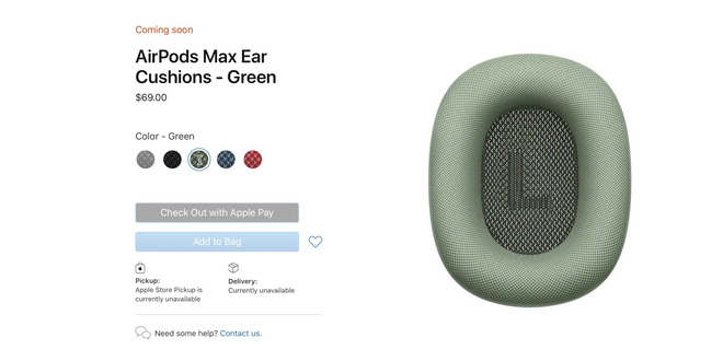 Đệm tai thay thế cho AirPods Max đang được Apple bán ra với giá 69 USD và có 5 tùy chọn màu sắc.