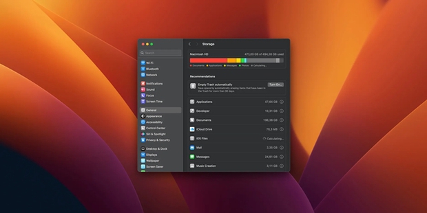 Để giúp bạn thực hiện quy trình này, hãy mở System Settings > General > Storage Settings. macOS sẽ cho bạn biết chính xác những gì đang chiếm dung lượng bên trong máy Mac của bạn, và từ đó bạn có thể thống kê và xóa một số tập tin hoặc ứng dụng mà bạn không còn cần đến nữa.